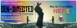 In a world where the government assigns gender, we rise up and fight back. Gen-Directed crafts a dystopic world where those in power would rather isolation prevail. And yet, hope is found and community is cultivated in underground, nightlife spaces! Told through original scenes, songs, and lip sync performances, watch as the oppressed and their oppressors collide.